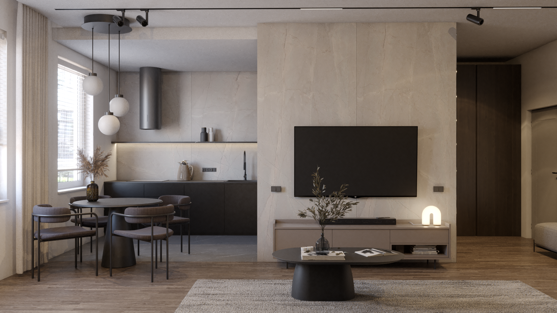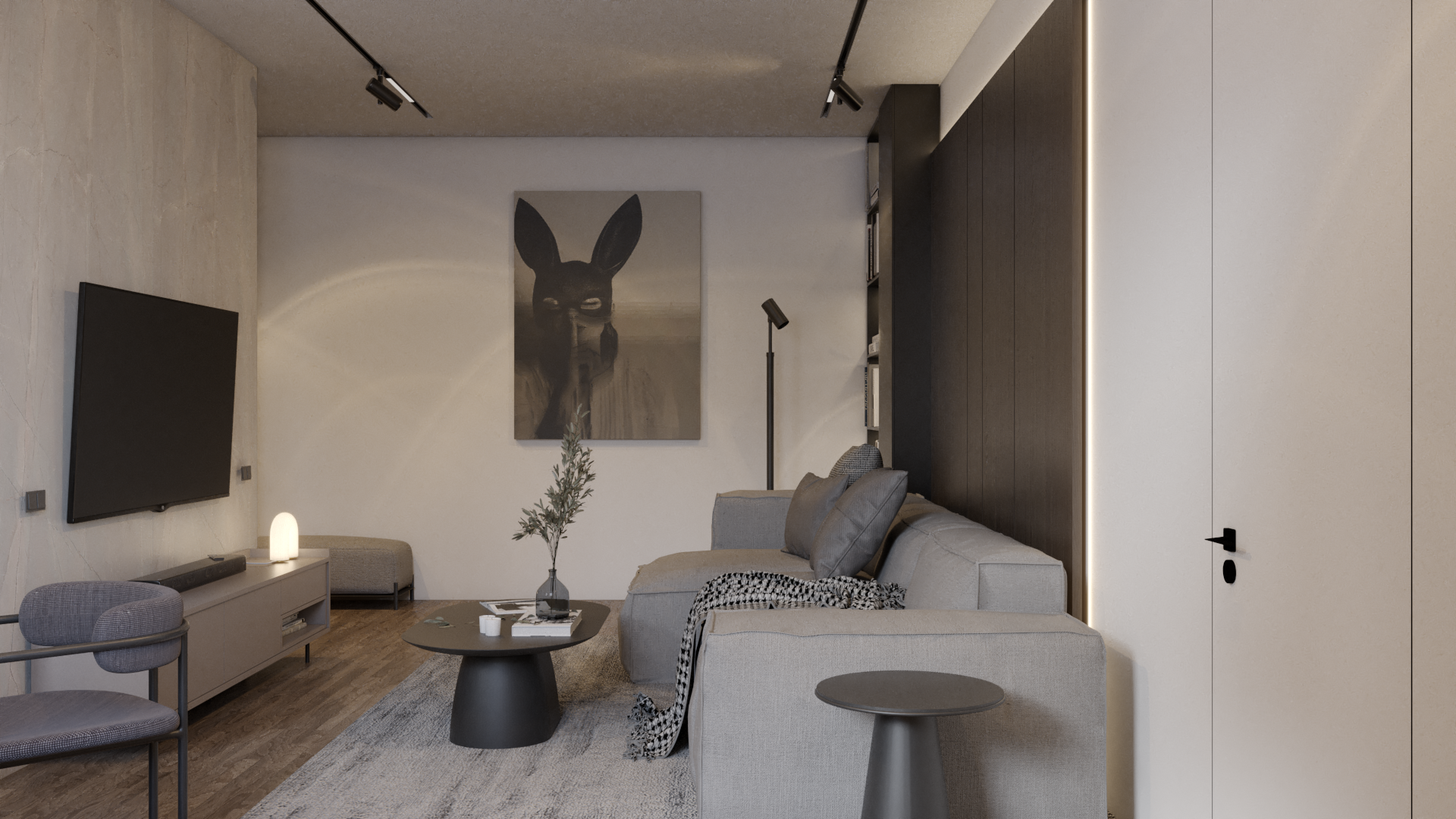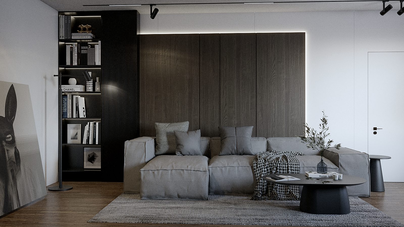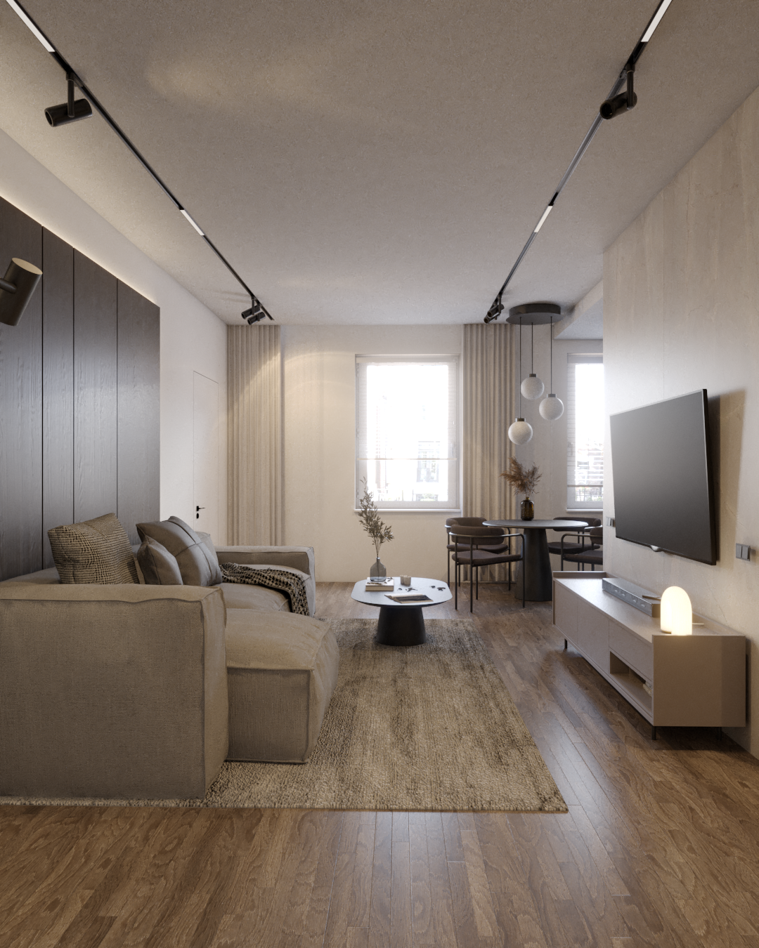 To mieszkanie jest dowodem, że projekt dla singla nie musi być nudny. Wygoda, porządek i elegancja idą tu ręka w rękę z praktycznością. Całość od A do Z dopasowana do miejskiego stylu życia: relaks, praca, spotkania z przyjaciółmi — wszystko tu działa. Śmiało, można czuć się tu „u siebie”. To mieszkanie to świetny przykład, jak wyczucie stylu i prostota idą w parze z wygodą. Ciemne drewno, beże i szarości tworzą tu bazę — wnętrze wygląda spokojnie, ale też bardzo elegancko i przytulnie.